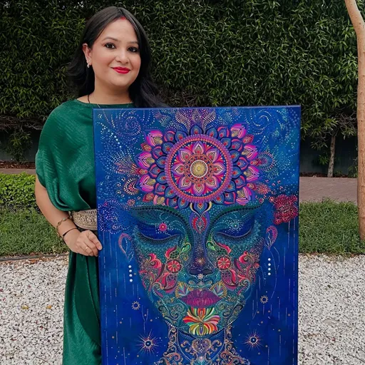 Art entered my life when everything else felt uncertain. After ten years in the IT industry, a layoff and a year of chronic pain forced me to slow down and sit with myself. In that space, dot by dot, art became my therapy and my voice. Today, I create mandala and dot artworks inspired by peace, resilience, and inner stillness. My process is slow and meditative, shaped by patience and presence. Each artwork reflects a personal journey of healing and quiet strength, inviting the viewer to pause, breathe, and reconnect.